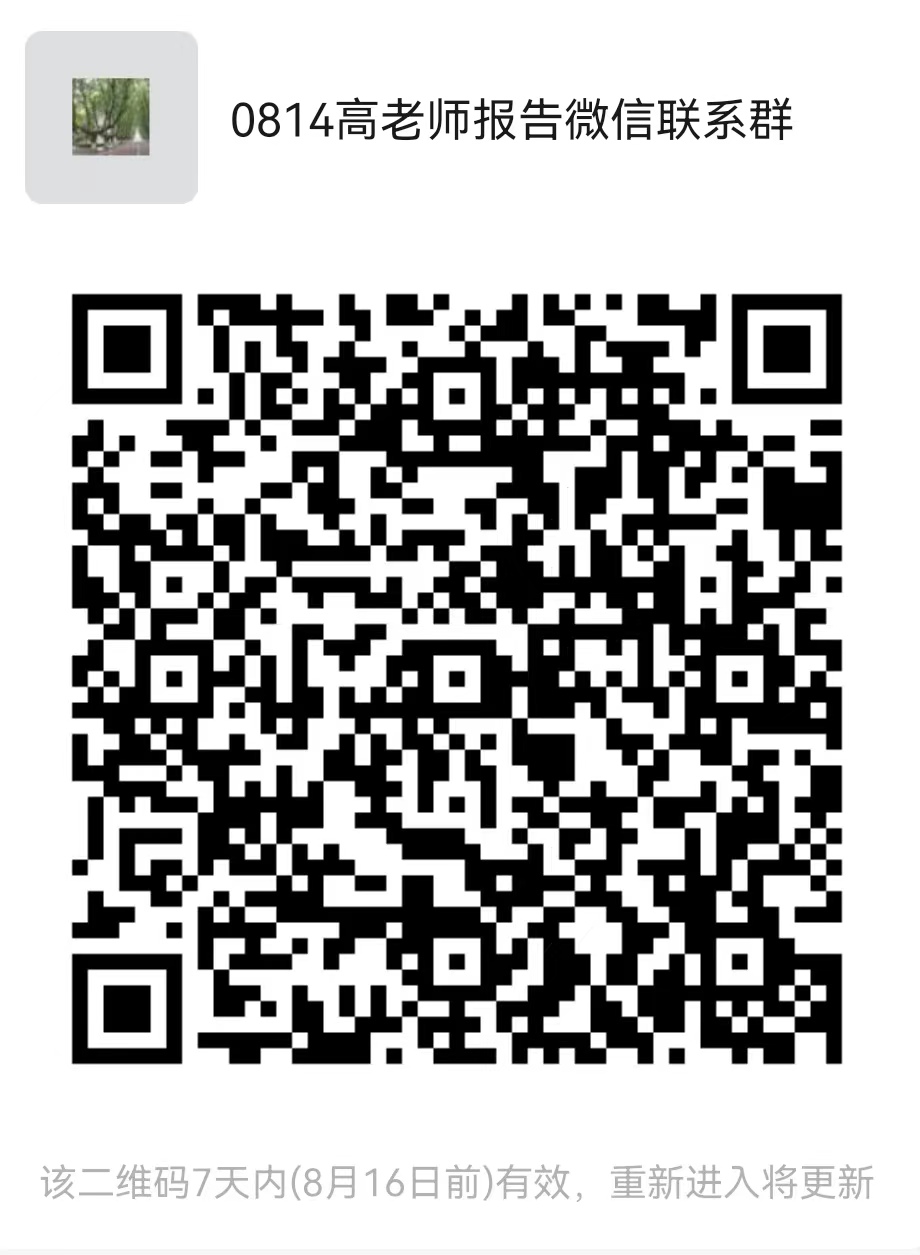 | 腾迅会议ID:781-966-351;会议密码:2208 会议时间:2022/08/14 15:30-(GMT+08:00)中国标准时间 -北京 点击链接入会,或添加至会议列表: https://meeting.tencent.com/dm/05kkV5srxloL 请以真名入会,否则可能会被移出会议! 特别说明:本次讲座为线下方式,腾迅会议是备用;但若有疫情管控等政策要求,会转为上述线上方式。;可及时扫描左侧二维码,了解可能的变化情况!!! | |